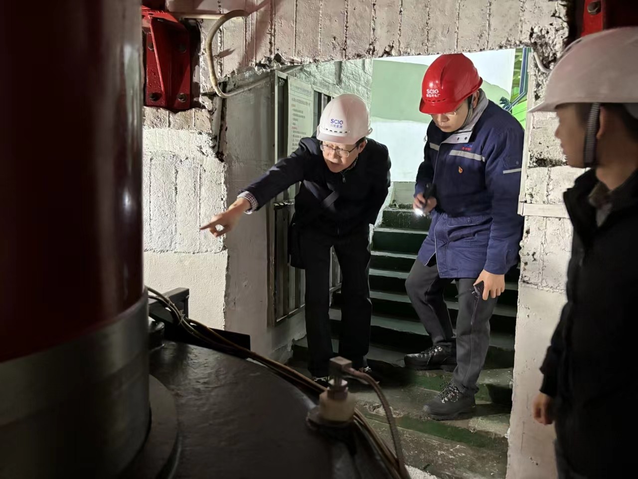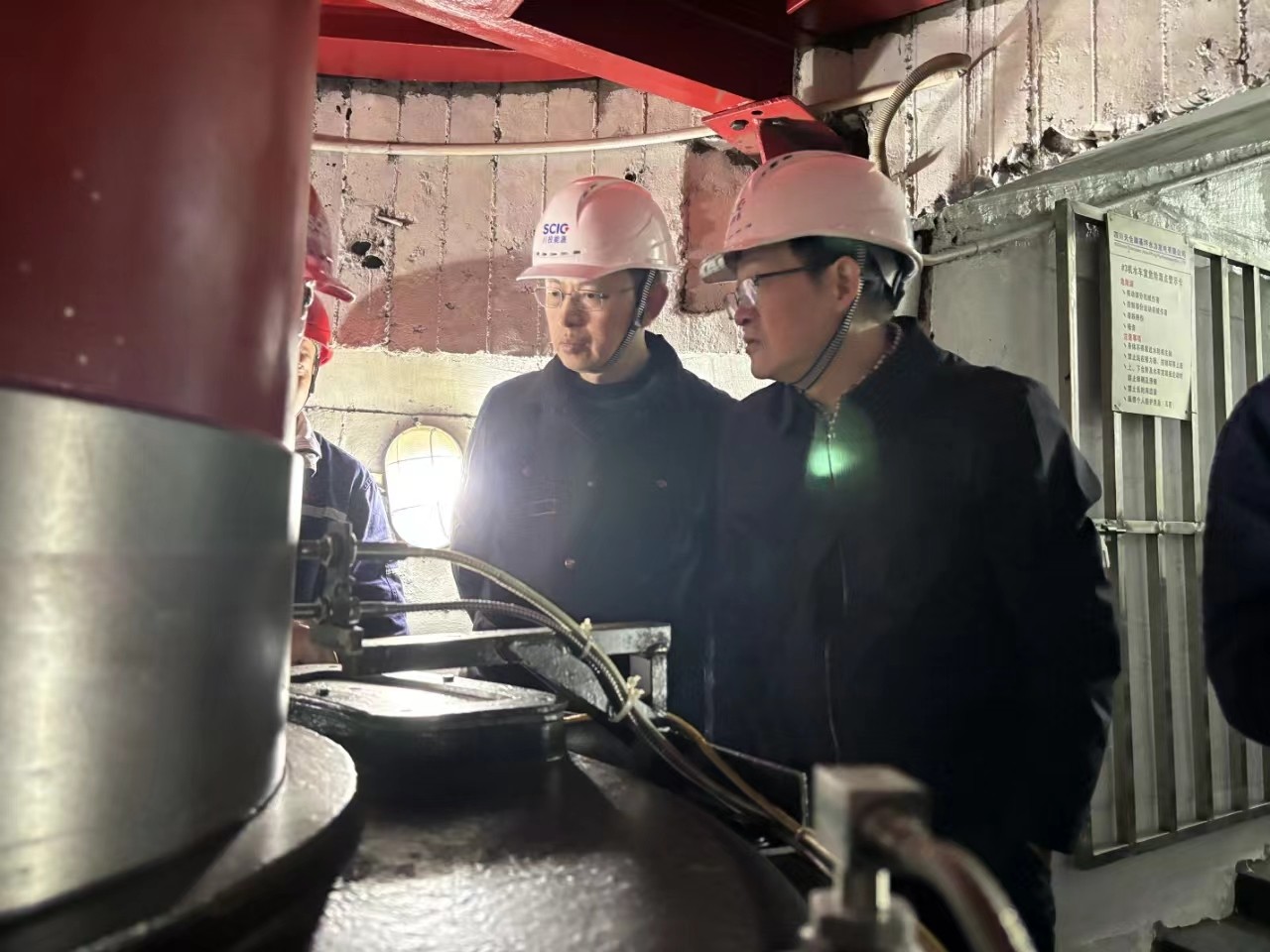 杨平一行实地察看电厂主厂房、发电机主设备、蝶阀、应急物资储备等情况,翻阅抽查风险隐患管理及水淹厂房应急管理等资料,指出存在问题,提出工作要求。
