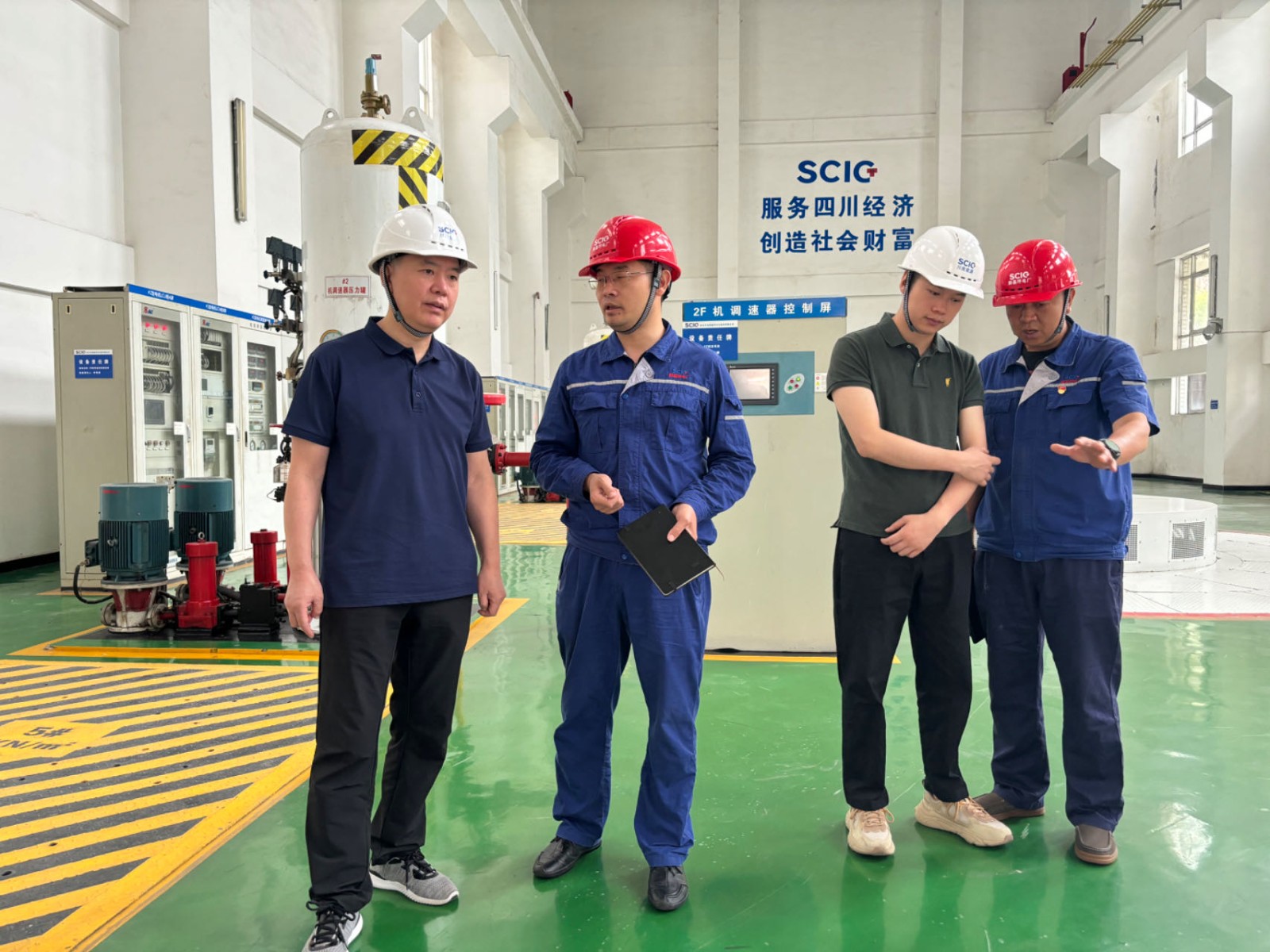 检查组一行先到生产一线对主厂房设备设施、大坝水库调度、生态流量下泄、应急物资储备、中控室生产运行情况进行了重点查看,检查中,脚基坪电厂厂长赵兵对应急物资储备情况、防汛应急预案、汛期值班值守、地质灾害风险辨识和防范措施等情况进行了汇报,陶世贤对脚基坪电厂在防汛减灾各项工作落实情况给予了充分的肯定。