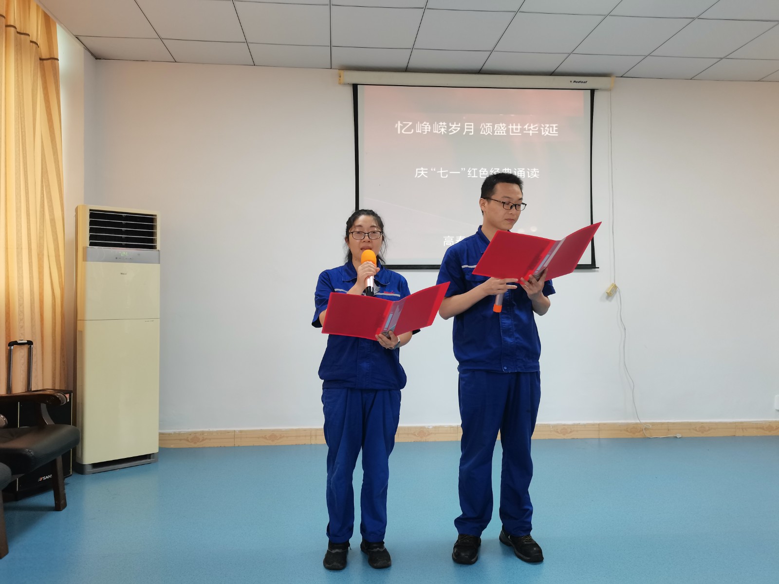 7月10日上午,高奉山电厂会议室气氛热烈,为庆祝中国共产党建党103周年,歌颂党的丰功伟绩,激发全体党员爱党爱国、敬业奉献的热情,电厂党支部组织开展了“忆峥嵘岁月,颂盛世华章”红色经典诵读主题党日活动。