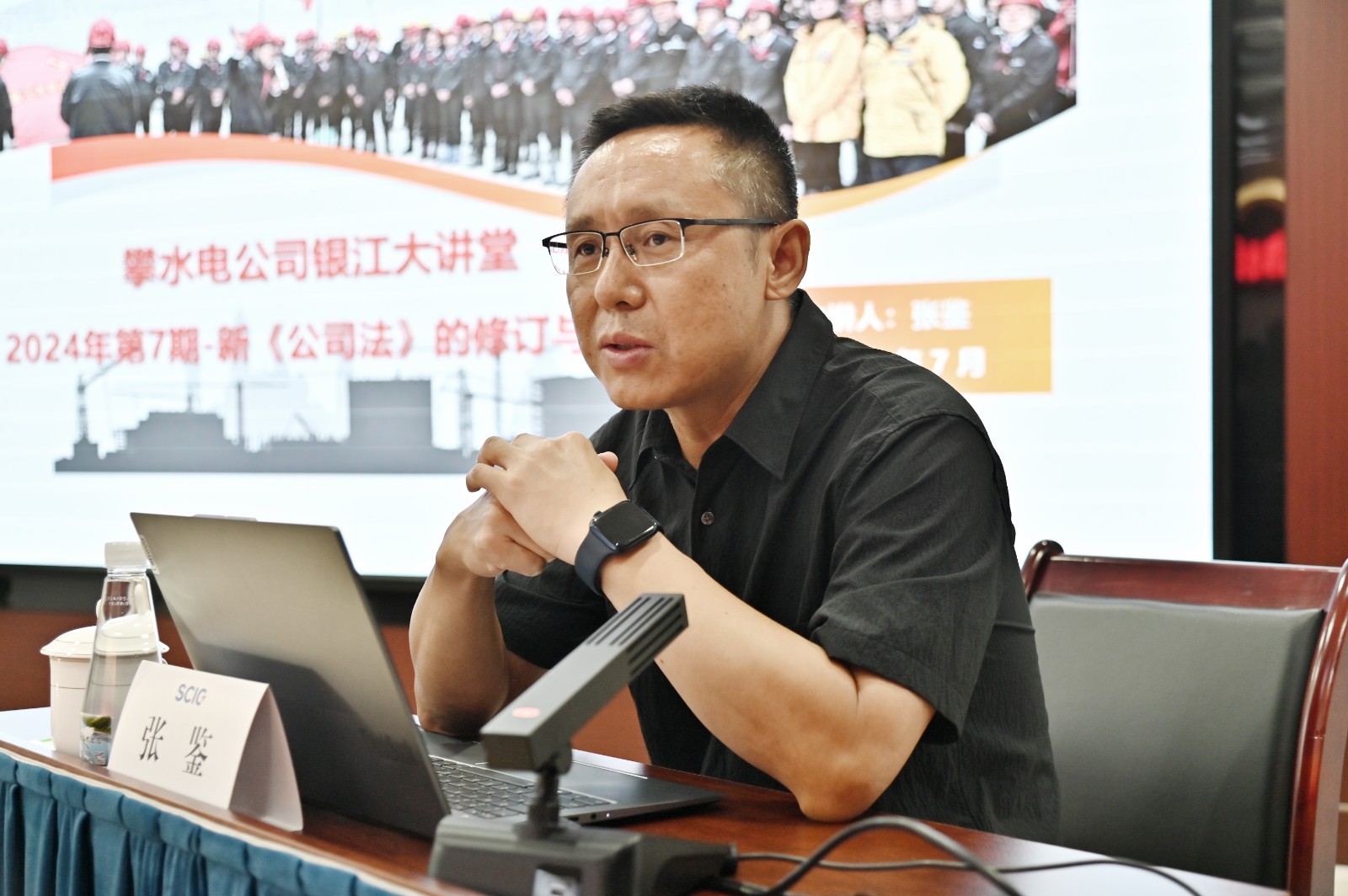 为进一步推进依法治企和合规管理,提高董监高履职能力,7月11日,攀水电公司组织开展了以“新《公司法》背景下董监高履职能力提升”为主题的第7期“银江大讲堂”,邀请攀枝花学院法学院专业教师、资深律师张鉴进行专题授课。公司股东单位代表、董事、监事及高管共10余人参加培训。