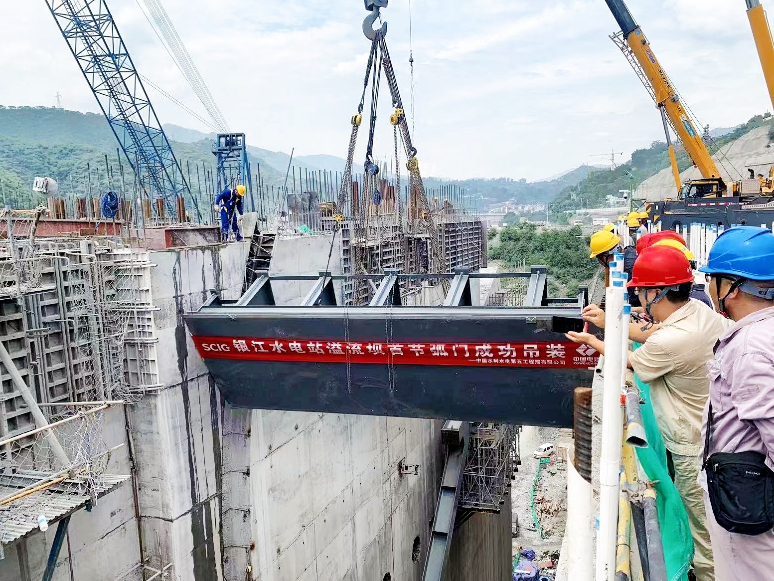 7月22日,正值银江水电站开工建设五周年纪念日之际,工程建设再传捷报,首节弧形工作门吊装成功,标志着银江水电站闸门安装高峰期正式拉开序幕。