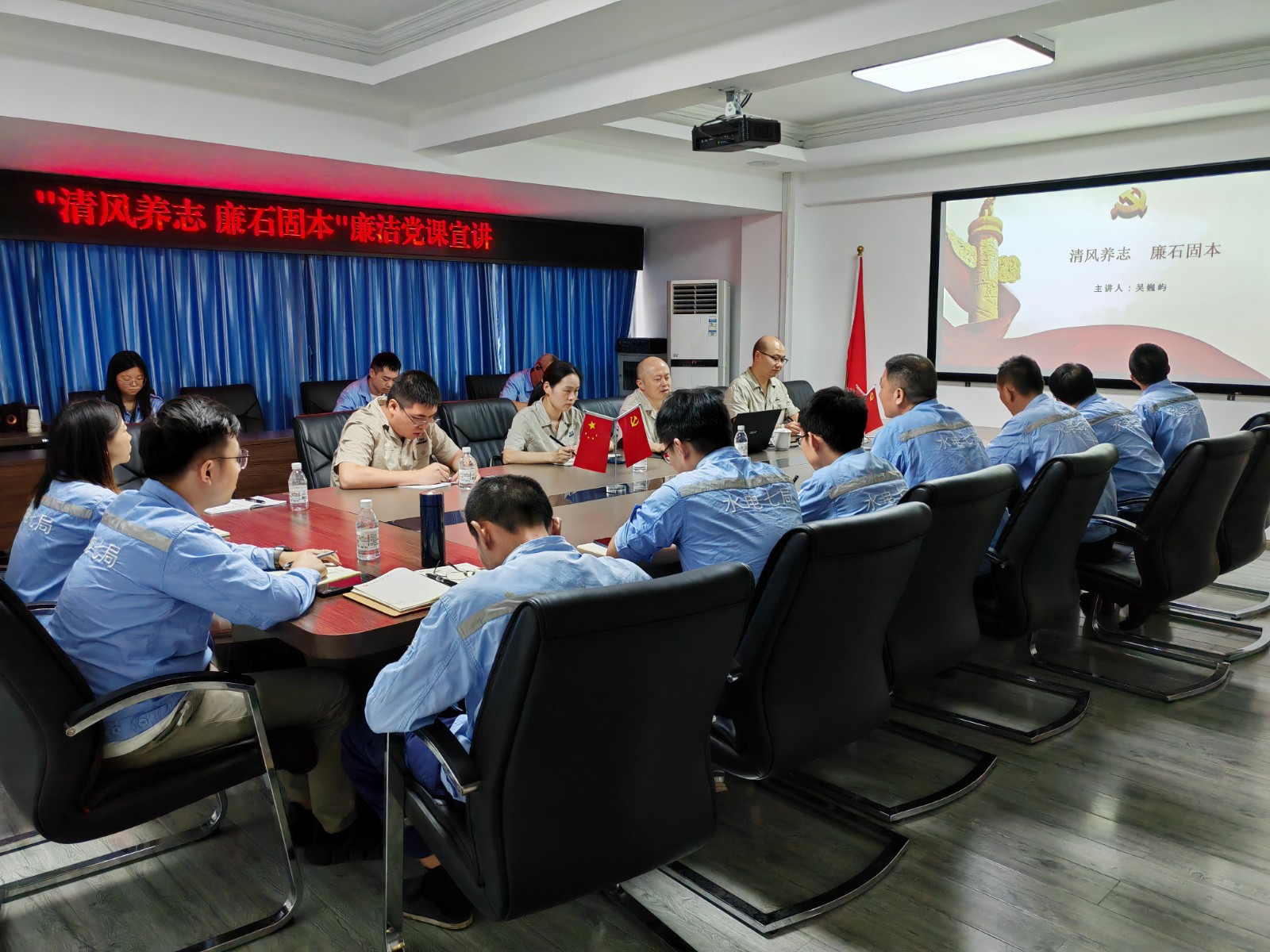 为不断增强党员干部和广大员工廉洁自律和责任担当意识,9月13日,攀水电公司党总支副书记、总经理吴巍屿在联系指导水电七局银江项目支部的过程中,以“清风养志、廉石固本”为主题,为支部成员讲授了一堂廉洁党课,公司计划合同部、水电七局项目部主要负责人及相关部门共计17人参加。
