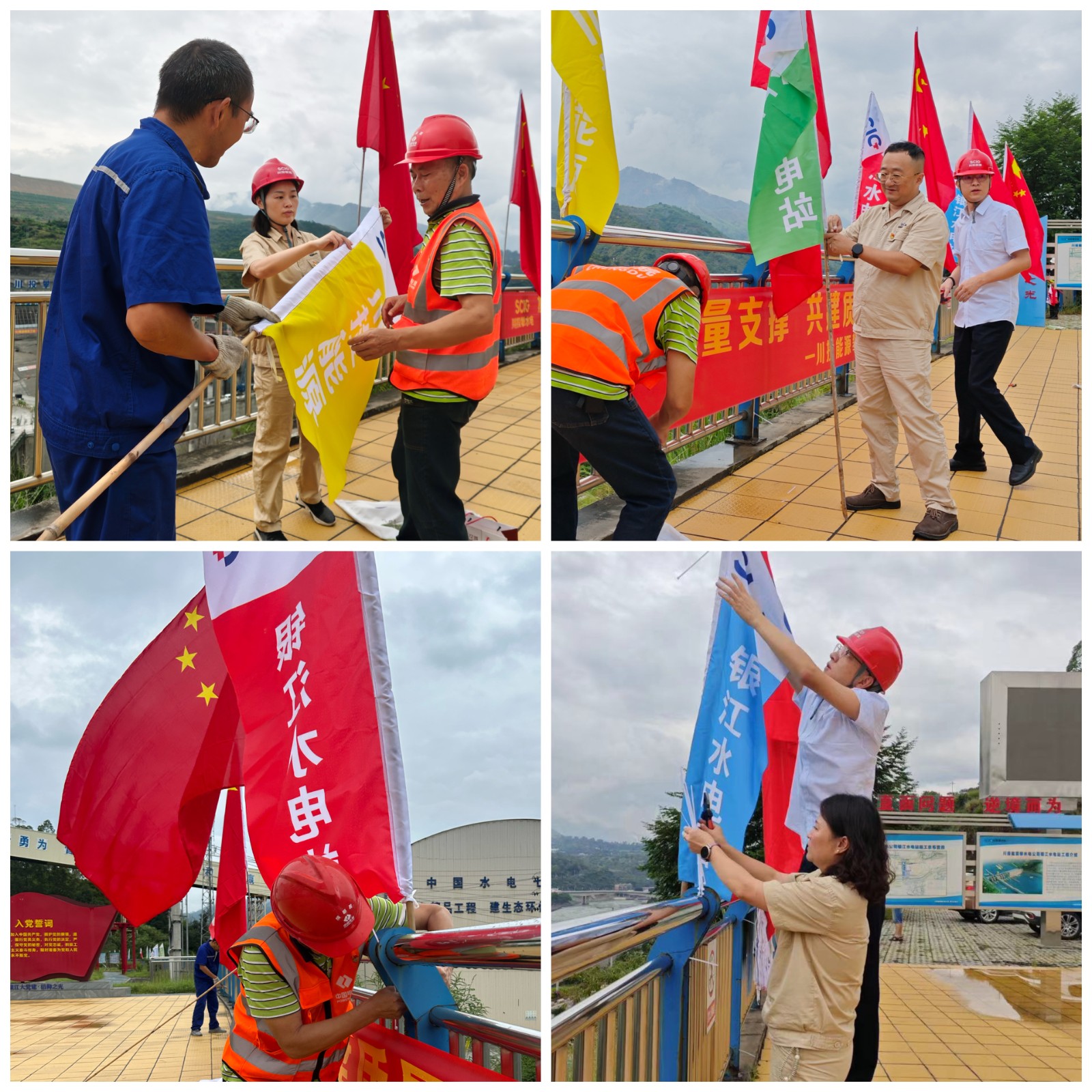 为热烈庆祝中华人民共和国成立75周年,9月30日,攀水电公司一、二支部及联建支部30余名党员共同开展“装点银江、喜迎国庆”暨安全文明施工再提升主题党日活动,用国旗、彩旗装点工地,用辛勤劳动抒发热忱,将国庆的氛围感拉满,以各种形式迎接国庆节的到来。