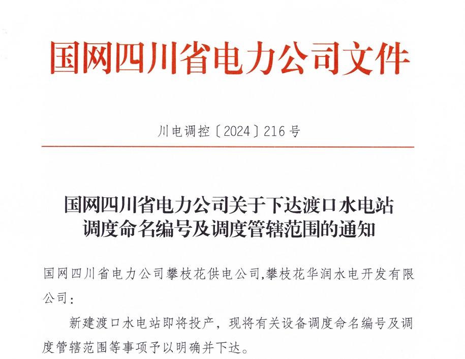 银江水电站投产发电在即,因“银江”二字已被银江变电站占用,攀水电公司动员全体员工集思广益,挑选符合规定又有寓意的调度名。10月8日,在国网四川省电力公司和红桃视频 的指导帮助下,经过积极对接、多方协调,攀水电公司成功取得国网四川省电力公司对银江水电站和送出线路的调度命名,银江水电站的调度名为“渡口水电站”,银江水电站220kV送出线路调度名为“220kV渡银线”。