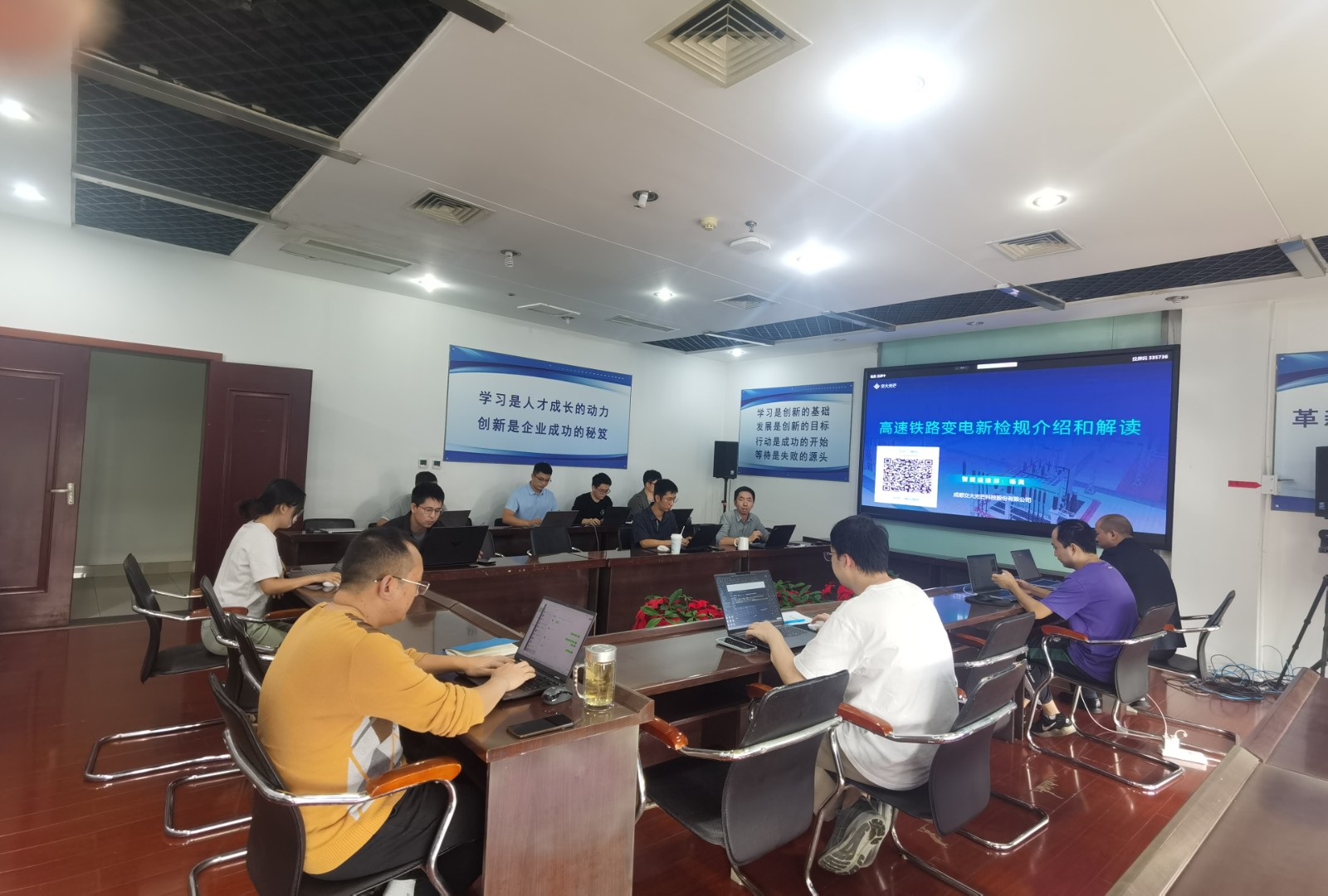 杨昊详细解读了新检规的出台背景、具体内容和重大意义。他指出,新检规落实国铁集团党组关于牵引变电所无人化的工作部署,适应信息化、智能化发展进程,将牵引变电所运行管理、运维修试、应急保障等规则予以完善,是交大光芒高铁供电智能运维系列产品的根本遵循。他强调,研发中心要深入研究对标新检规,对现有运维产品进一步智能升级改造,研发更符合时代需求的、更加智慧的实时监测和科学诊断系统,以新质生产力赋能中国高铁进一步提升供电可靠性。