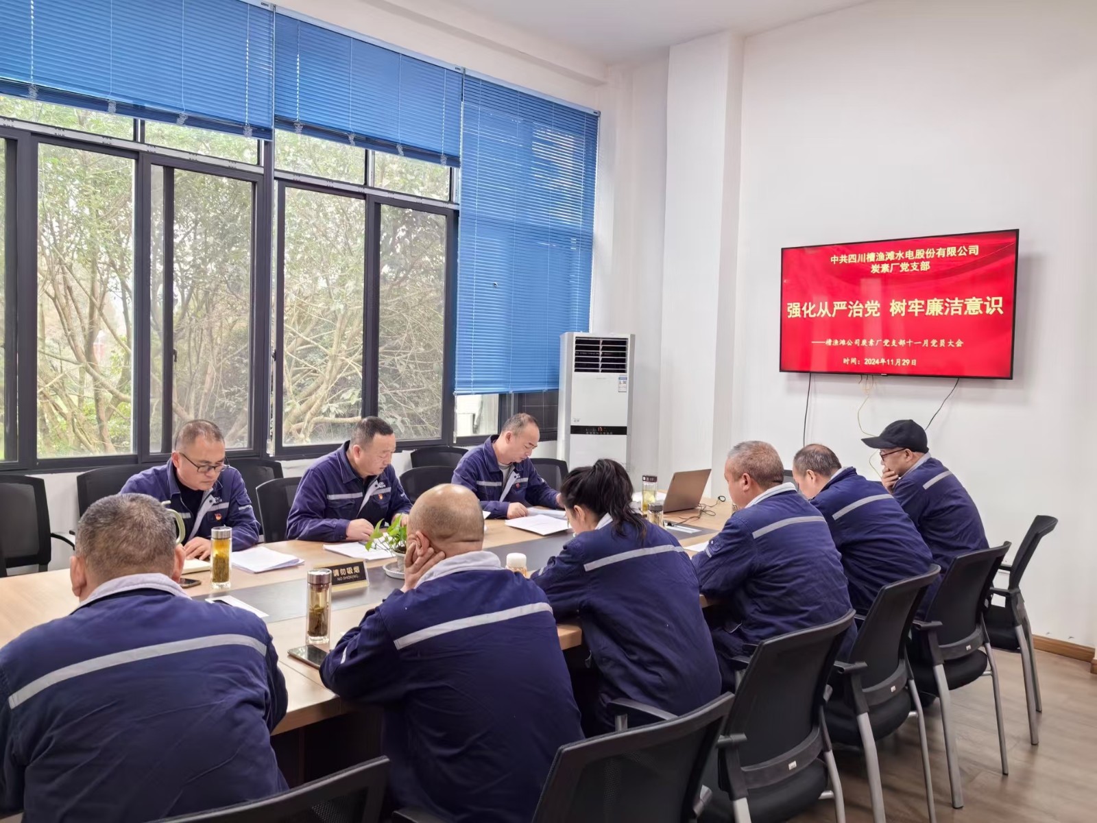 近日,川投电力所属槽渔滩公司炭素厂党支部召开党员大会,开展支部党员廉洁教育,进一步强化党支部全面从严治党工作,树牢支部党员廉洁从业意识。会议由支部书记、厂长白增明主持,支部党员、入党积极分子共10人参加会议。