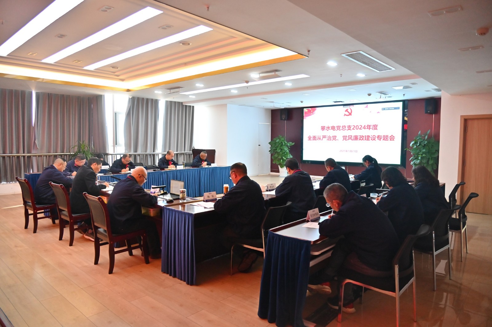 1月23日,攀水电党总支组织召开2024年度全面从严治党、党风廉政建设专题会,红桃视频 副总经理、攀水电公司党总支书记、董事长徐孝刚出席会议并讲话,公司党总支委员、纪检小组长杨锐主持会议,公司领导班子成员参加,公司各部门负责人、党群工作部、纪检工作部员工列席。