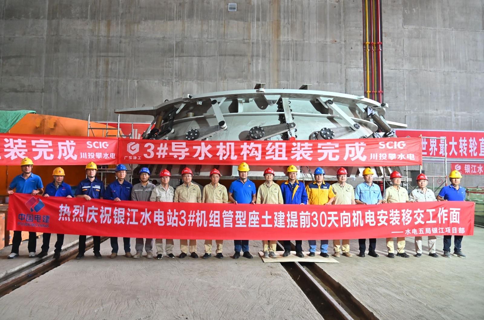 三期浇筑提速破局,机组拼装全力推进。公司紧紧围绕2025年防洪度汛和全部机组投产发电这两个重点目标,团结带领各参建单位,精心统筹、倒排工期,采取优化设计方案、调整施工工艺、强化资源调配等一系列措施,推动工程建设始终保持高速前进的态势。目前,银江水电站三期工程11号至13号坝段混凝土浇筑施工全面推进,一季度实际完成的浇筑工程量超出原计划20%;3号机组转子组装工作已经完成,定子组装完成60%,导水机构、主轴等关键部件均已运抵现场并正在加紧组装;3号机组管形座二期混凝土浇筑完成 50%;5号、6号机组管形座安装分别完成90%、60%,正朝着2025年底全面建成投产的目标全力奋进。
