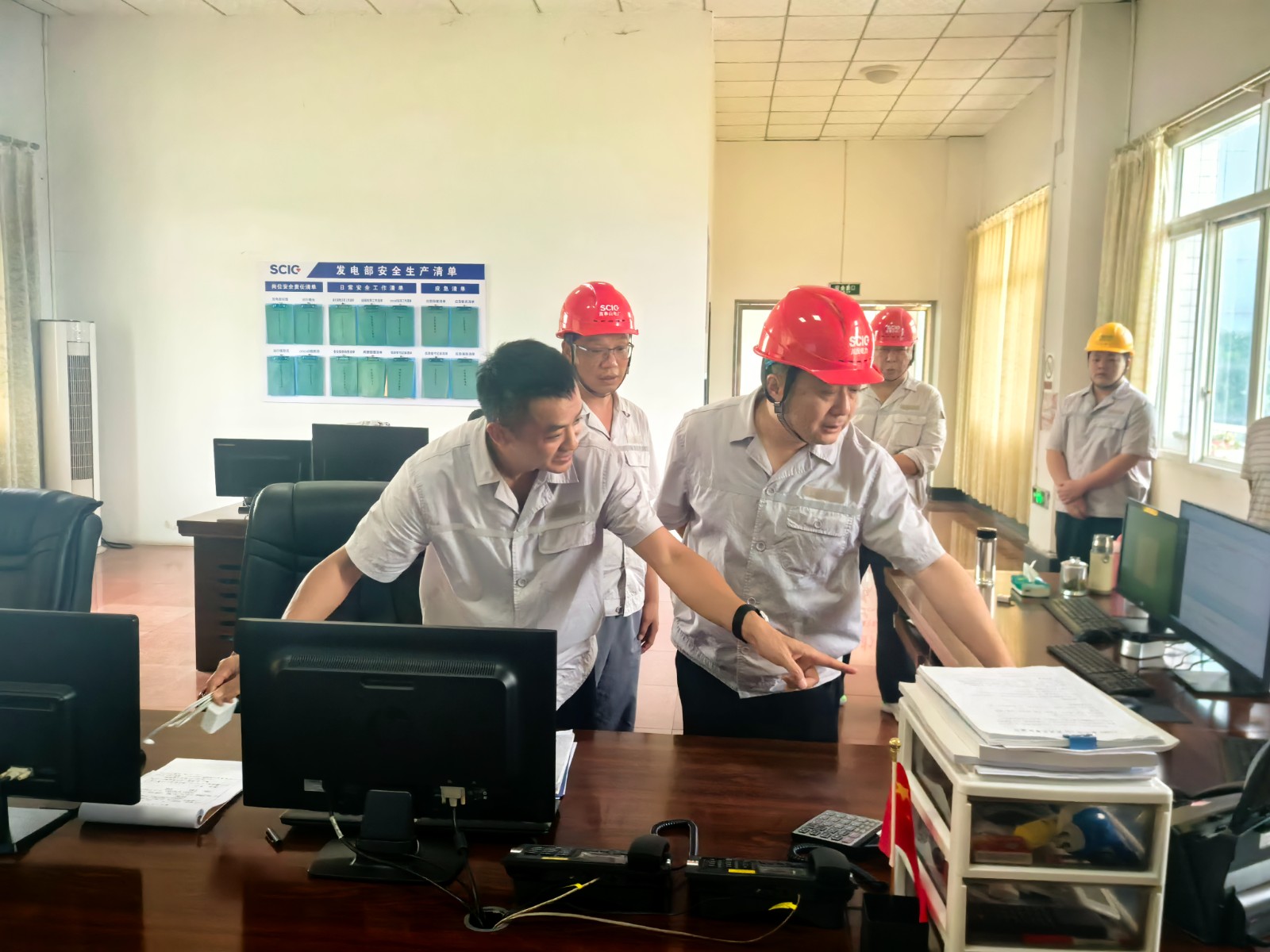 杨涛一行直奔生产现场,实地查看了大坝枢纽、发电机组、中控室、防汛物资储备点等关键区域,详细询问了当前水库水位、来水趋势、设备运行状态及防汛应急预案落实情况。在听取电厂关于汛期安全工作的汇报后,杨涛对电厂前期防汛工作给予肯定,并就做好近期安全工作提出工作要求:一是强化责任落实,严格执行24小时防汛值班制度,确保各级责任人到岗到位。二是排查风险隐患,针对极端天气可能引发的山洪、滑坡等风险,开展拉网式排查,对发现的问题建立台账、限期整改,确保不留死角。三是完善应急预案,加强实战演练,确保应急响应迅速有效,保障电站及下游群众安全。四是统筹发电与防汛,科学调度水库库容,平衡发电效益与防洪安全。