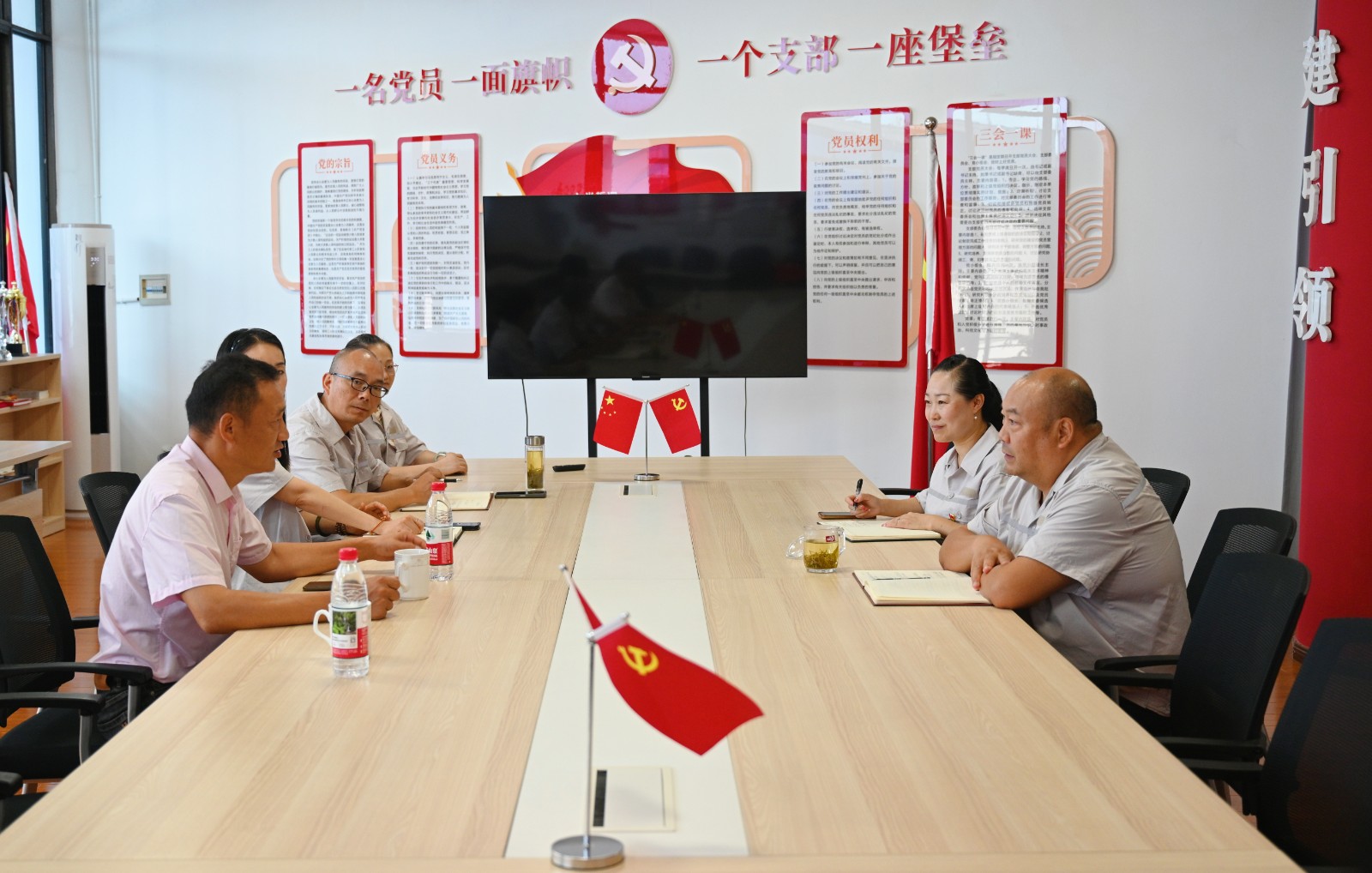 8月19日,槽渔滩公司党委与文山村党总支开展党建暨乡村振兴交流座谈会,公司党委副书记、总经理陈忠、文山村党总支书记张春强,公司党群工作部、文山村党总支相关人员参加座谈。