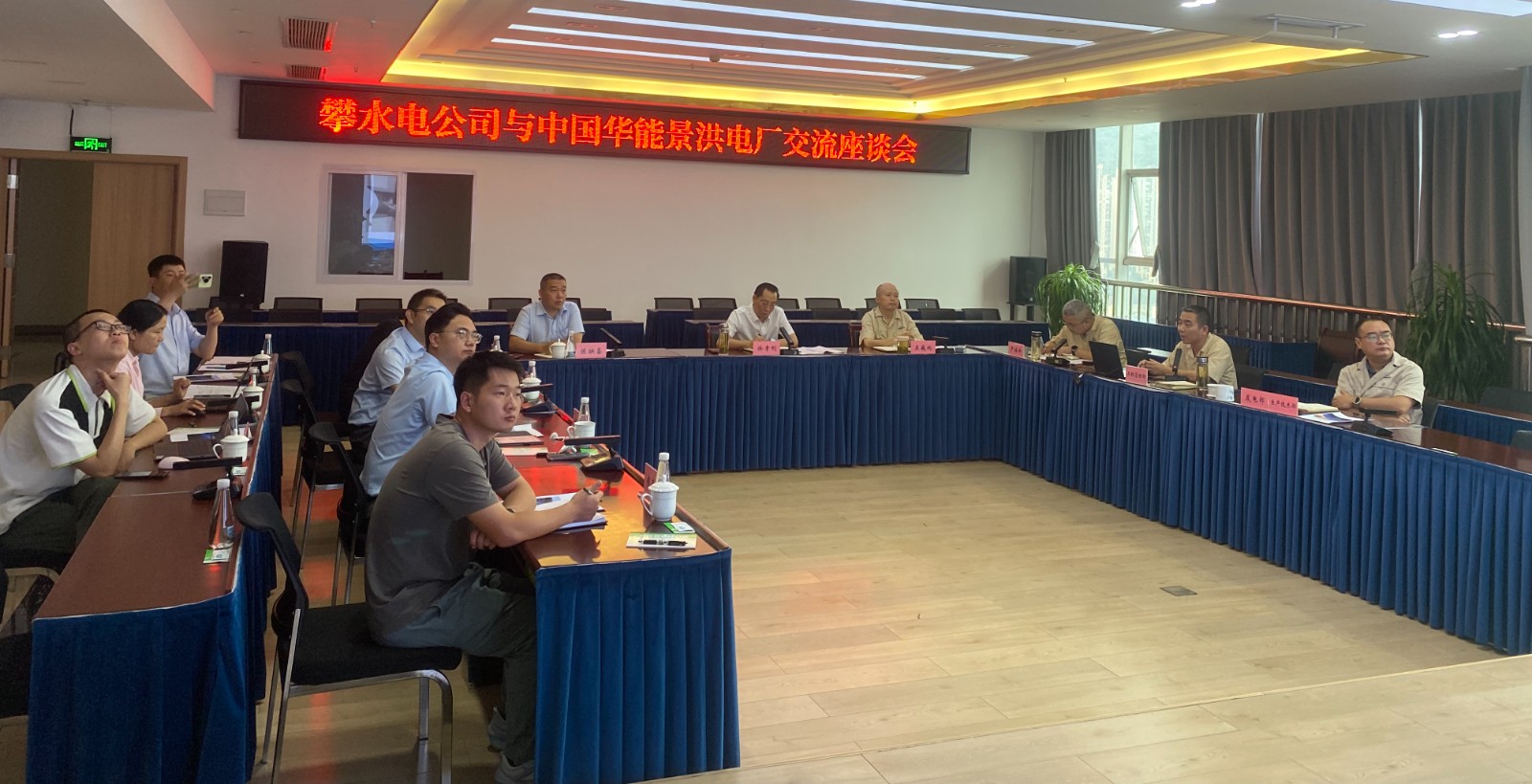 参观结束后,双方在公司会议室举行了座谈交流会,攀水电公司系统介绍了银江水电站机组及主要设备选型、科研项目推进和电站投产运行等方面的情况与实践经验。座谈期间,双方围绕贯流式机组运维管理、技术创新与工程实践等议题充分交换了意见,同时景洪电厂方面结合参观过程中遇到的实际困惑,以及在自身电厂建设中出现的具体问题,如复杂地质条件下的基础处理、汛期施工组织、大型设备吊装等技术难点与我方开展了专项研讨。