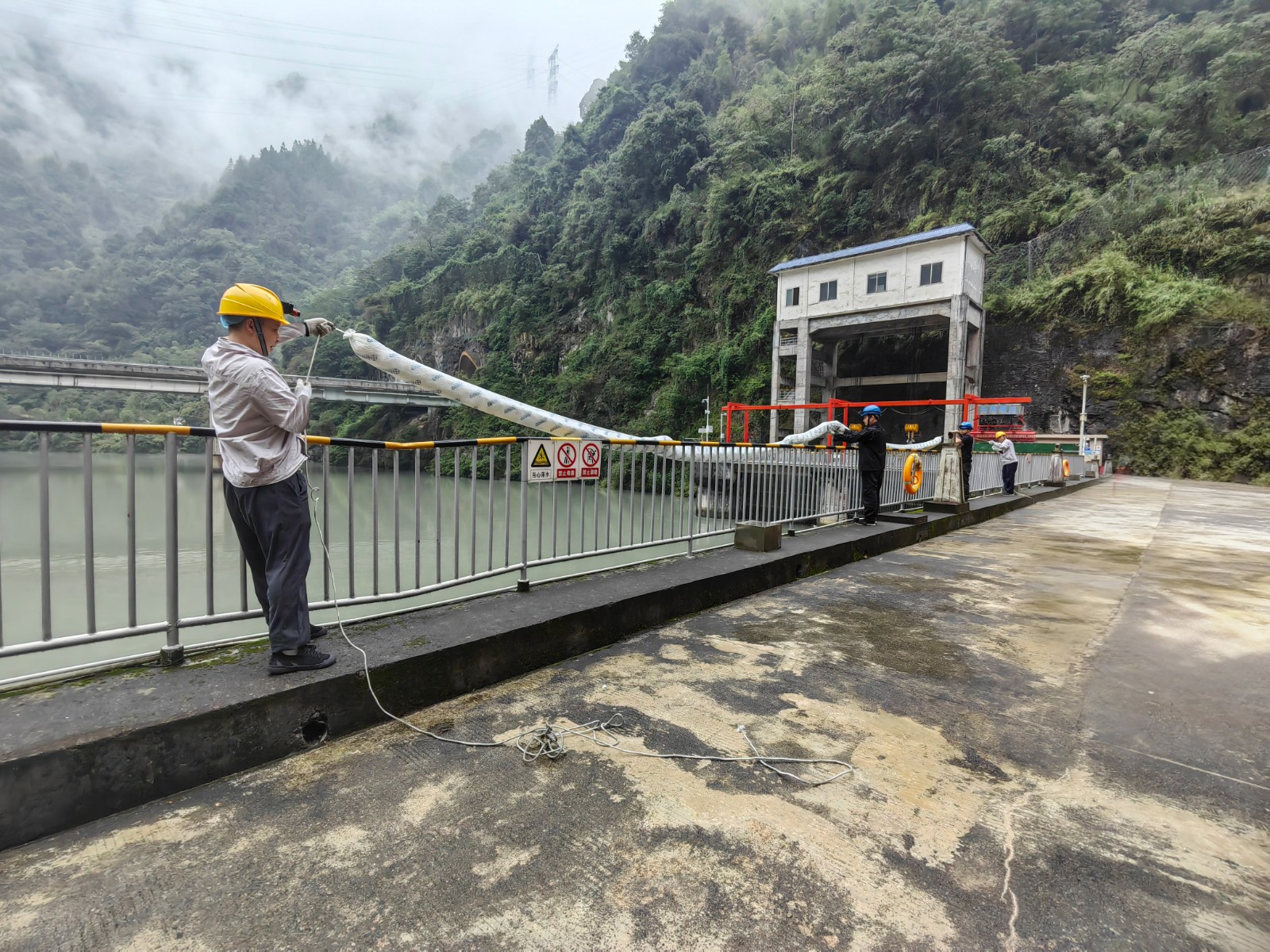本次演练背景设定为电站大坝2#泄洪闸左侧齿轮箱突发漏油,约50升齿轮油溅落至库区水面并扩散,值班人员发现险情后立即启动应急响应。中控室迅速协调上下游锅浪跷、汇溪电厂调整出力流量并协助布设拦油设施;运行组与应急抢险组携带吸油毡、拦油索等器材赶赴现场,对漏油点进行封堵,同时在闸门前和水面关键区域铺设拦油绳,防止污染扩散;后勤保障组全程待命,确保物资供应和人员安全。经过30分钟紧张有序的处置,油污被彻底清理,库区水质未受影响,演练圆满完成。