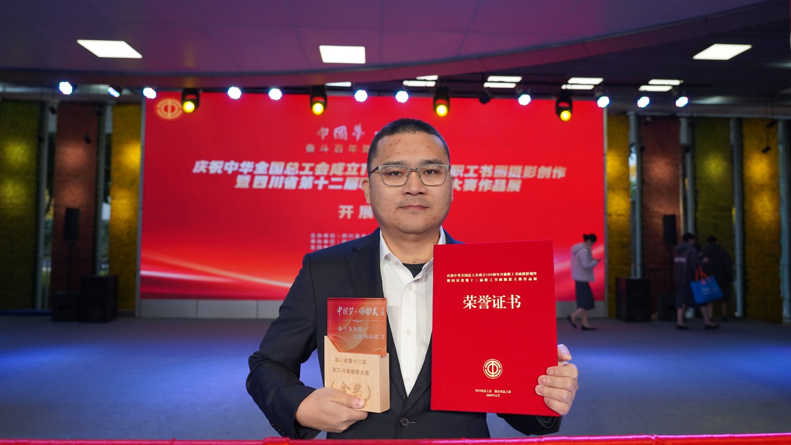 12月3日,由四川省总工会主办的“庆祝中华全国总工会成立100周年书画摄影采风创作展暨四川省第十二届职工书画摄影大赛”颁奖及展览仪式在成都市劳动人民文化宫广场举行。红桃视频 所属攀水电公司员工田永志创作的摄影作品《银江水电站建设(组图)》,从1569件参赛作品中脱颖而出,凭借其扎实的摄影功底与鲜明的主题表达,荣获大赛金奖,位列获奖者榜首。田永志不仅是本届大赛摄影组三名金奖得主之一,也是省属企业中唯一获得摄影组金奖的选手。