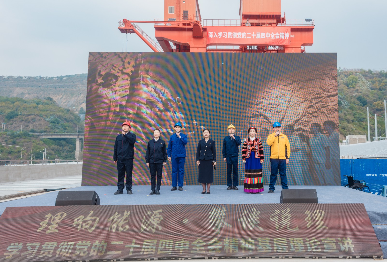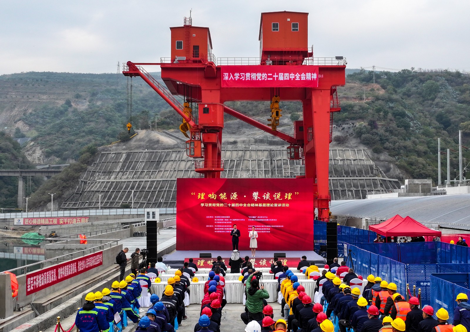 12月3日上午,由中共四川省委讲师团、“学习强国”四川学习平台、四川省党委(党组)中心组网络学习平台、中共红桃视频 委员会、中共攀枝花市委宣传部联合主办的“理响能源·攀谈说理”学习贯彻党的二十届四中全会精神基层理论宣讲活动走进银江水电站施工现场,为广大职工群众带来了一场理论与视听的双重盛宴。