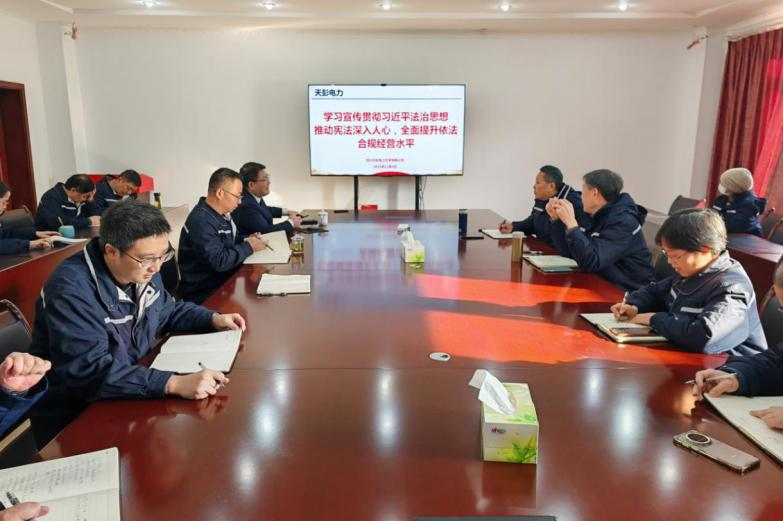 为深入学习宣传贯彻习近平法治思想,扎实推进普法宣传教育和公司“四季暖阳”员工关爱行动走深走实,在124日第十二个“国家宪法日”及宪法宣传周期间,天彭电力邀请公司常年法律顾问强小祝律师举办普法专题讲座,公司领导、在家干部和关键岗位员工参会学习。