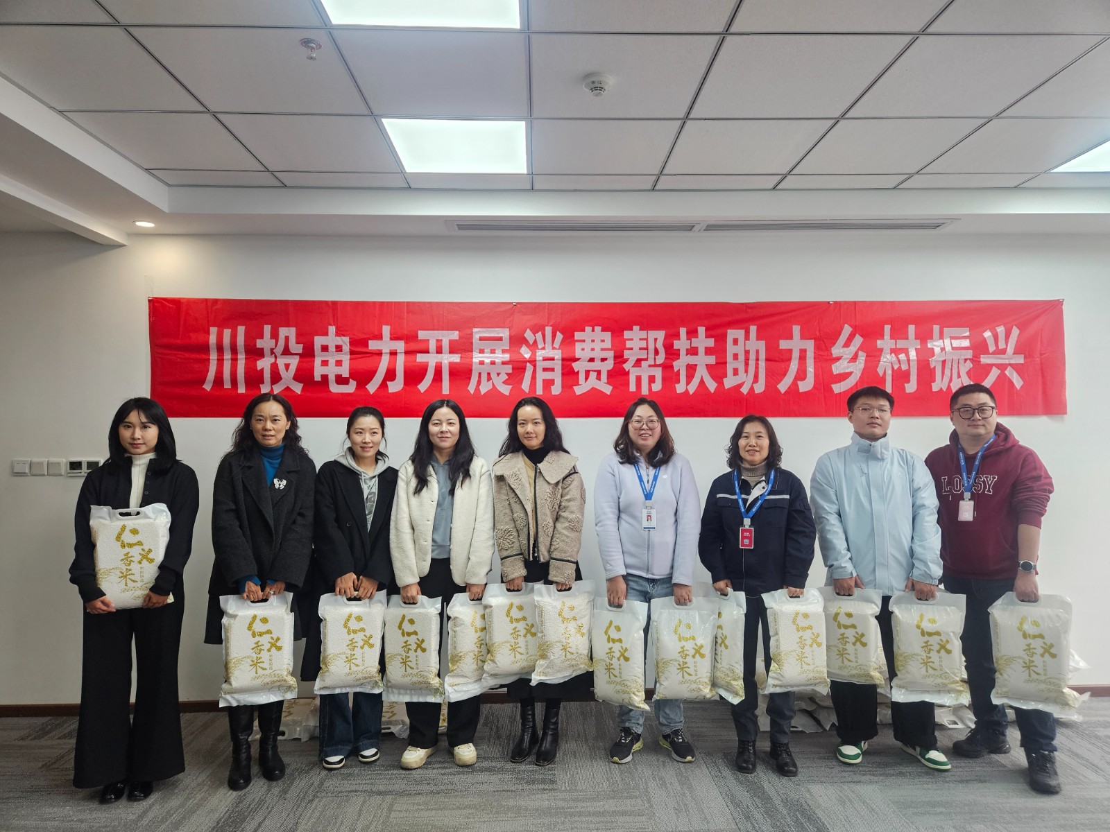 12月18日,川投电力开展消费帮扶——红军村大米专场采购活动。自2022年1月响应国家乡村振兴战略以来,公司已连续四年深耕撂荒地帮扶工作,2025年继续承租天全县仁义镇红军村30亩土地。截至目前,累计采购红军村大米超8万斤,采购金额突破30万元,切实助力村集体经济增长和农民增收。