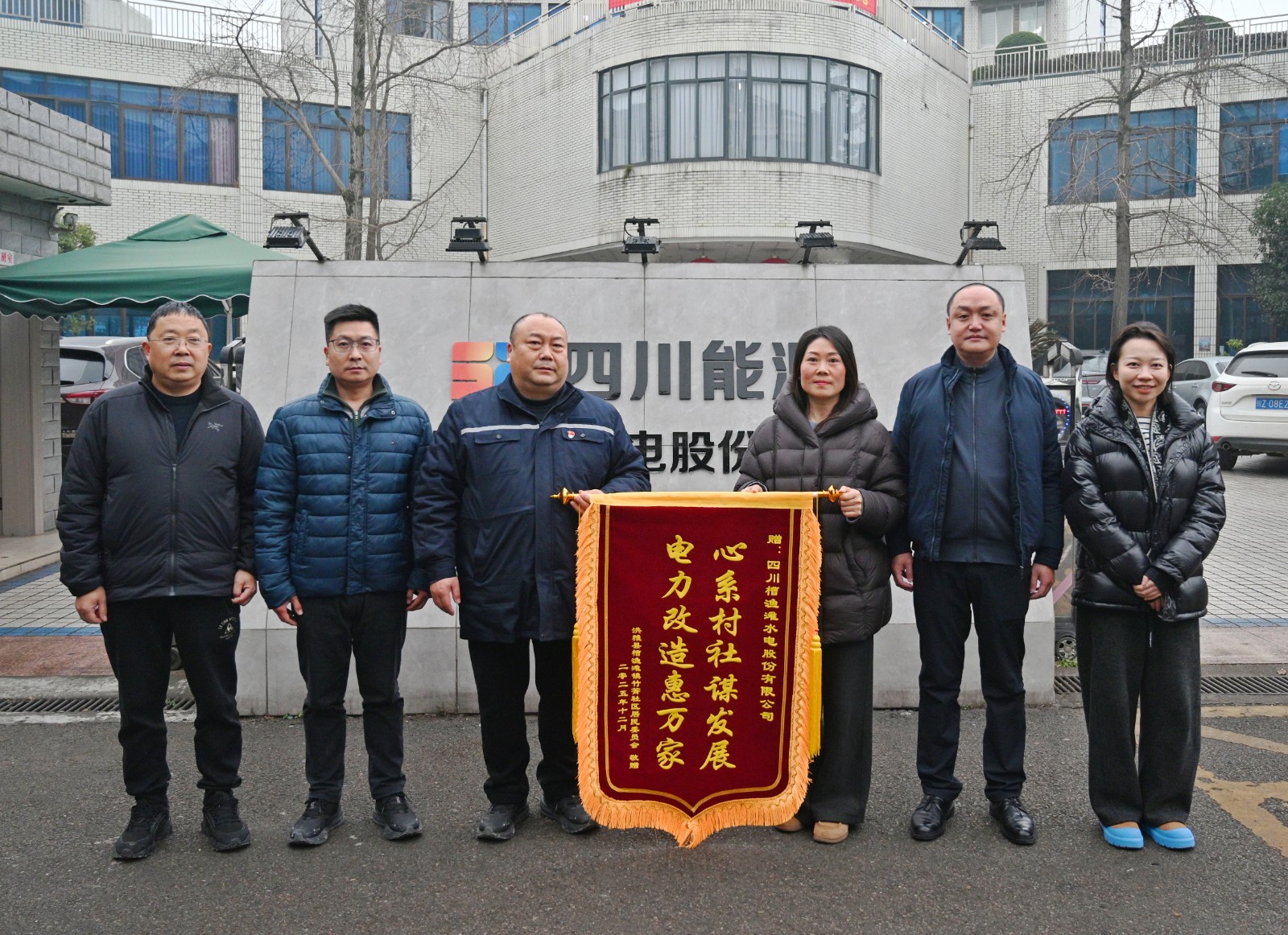 近日,槽渔滩镇党委副书记、镇长刘维,镇人大主席吴洋,竹箐社区党支部书记聂红霞一行专程前往槽渔滩公司,代表镇党委、镇政府及竹箐社区群众,送上一面印着“心系村社谋发展 电力改造惠万家”的锦旗,向公司电厂在供区内竹箐段线路改造工作中,全力保障库区群众冬季用电安全所付出的努力致以诚挚谢意。