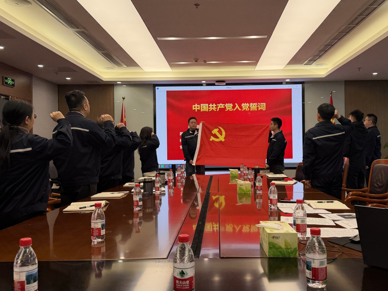 党旗前,全体党员与新党员一同高举右拳,庄严宣誓。铿锵有力的誓言,激发着每位党员心中的荣誉感、责任感和使命感,承载着对党的忠诚与对人民的承诺。通过宣誓仪式,新老党员共同接受了一次深刻的党性教育和精神洗礼,为党组织注入了新鲜血液和奋进力量。