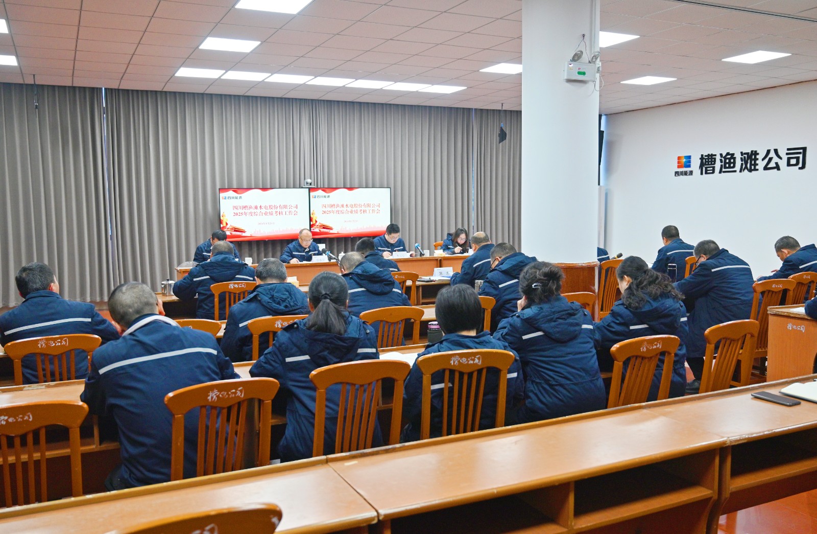 近日,川投电力党委副书记、总经理蔡承德带队到槽渔公司开展2025年度综合业绩考核。考核会由川投电力办公室主任李天宏主持,考核组成员、槽渔滩公司领导班子成员、中层正职干部及部分职工代表参加会议。