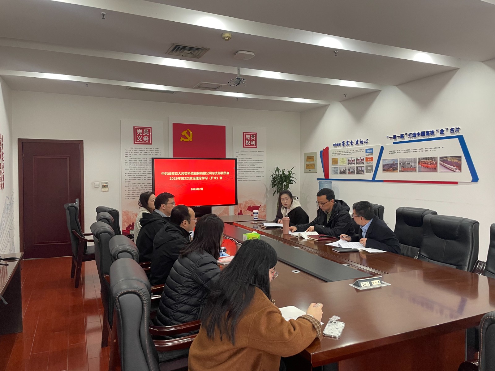 为深入学习贯彻党的二十届四中全会精神,巩固和深化深入贯彻中央八项规定精神学习教育成果,开好交大光芒2025年度党员领导干部组织生活会,2月2日,交大光芒党总支召开2026年第2次政治理论学习(扩大)会。会议由党总支书记、总经理王涛主持,党总支委员、人力资源部、纪检工作部、党群工作部工作人员参加学习。
