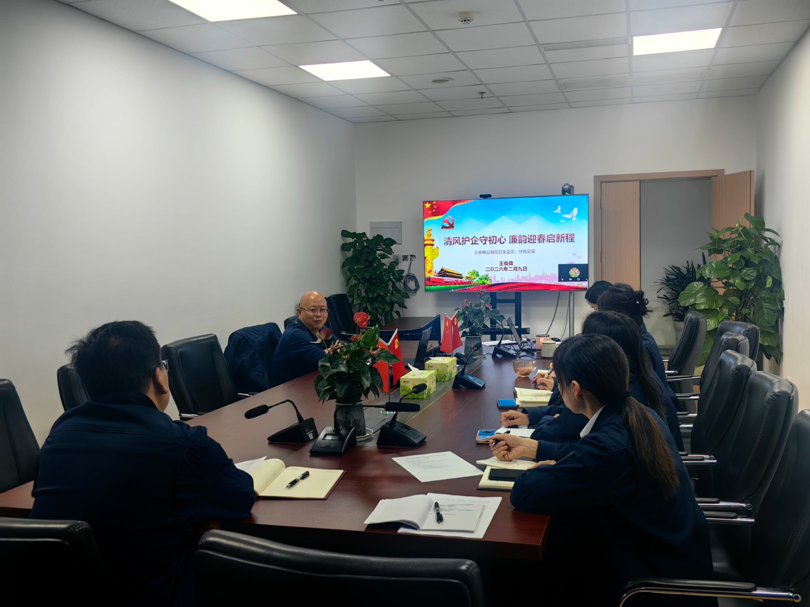 为进一步筑牢干部职工理想信念根基,强化全体员工廉洁自律意识与责任担当精神,精准掌握基层职工思想动态、工作状态与生活情况,2月9日,攀水电公司党总支委员、财务总监王俊森以“清风护企守初心 廉韵迎春启新程”为主题,在分管部门讲授廉洁专题党课,并同步开展2025年度组织生活会前谈心谈话。公司营销发展部、资金财务部全体人员参加。