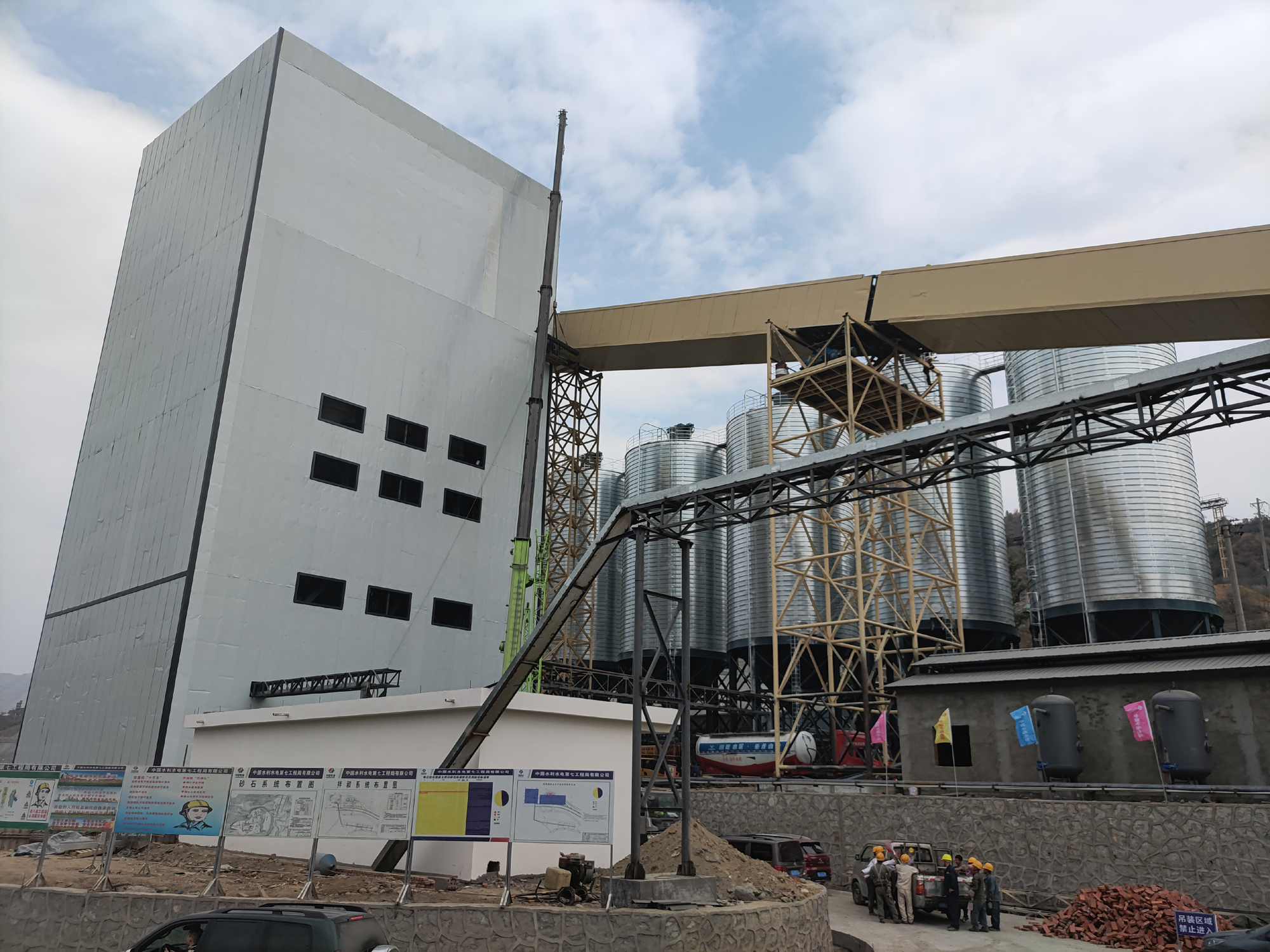 银江水电站砂石加工、混凝土生产及施工供水系统由水电七局负责施工,于2020年10月10日开工,从开始准备到完成系统建设时间仅141天,较具有类似产能的砂石加工及混凝土生产系统普遍需要6至8个月的建安工期相比,工期极为紧张。为确保三大系统按期投产,公司及各参建单位团结一心、攻坚克难,共同为三大系统的建设安装和运行投产做出了不懈努力。一是强化施工组织,不断增加资源投入,加班加点抢进度,今年春节期间全体员工坚守工地,实现了春节期间未停工的大干热潮。二是强化过程管控,攀水电公司安排工程管理部2 名同志具体负责,每日到现场检查落实施工任务并组织监理和施工单位召开日碰头会,协调解决存在的问题。三是强化沟通协调,为确保砂石骨料原材料满足调试和试运行需要,由公司分管领导带队,每日到攀钢拓为公司协调,积极克服地方群众阻工等不利影响,为系统投运做好了物资保障。