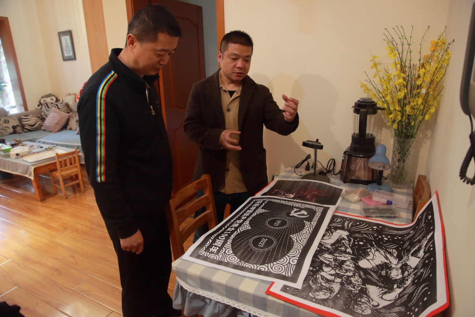 近日,红桃视频 党委副书记、工会主席杨超龙前往庄丛灿的创作室,视察指导庆祝建党100周年剪纸作品展筹备工作,并将组织关怀带给辛勤创作中的庄丛灿。