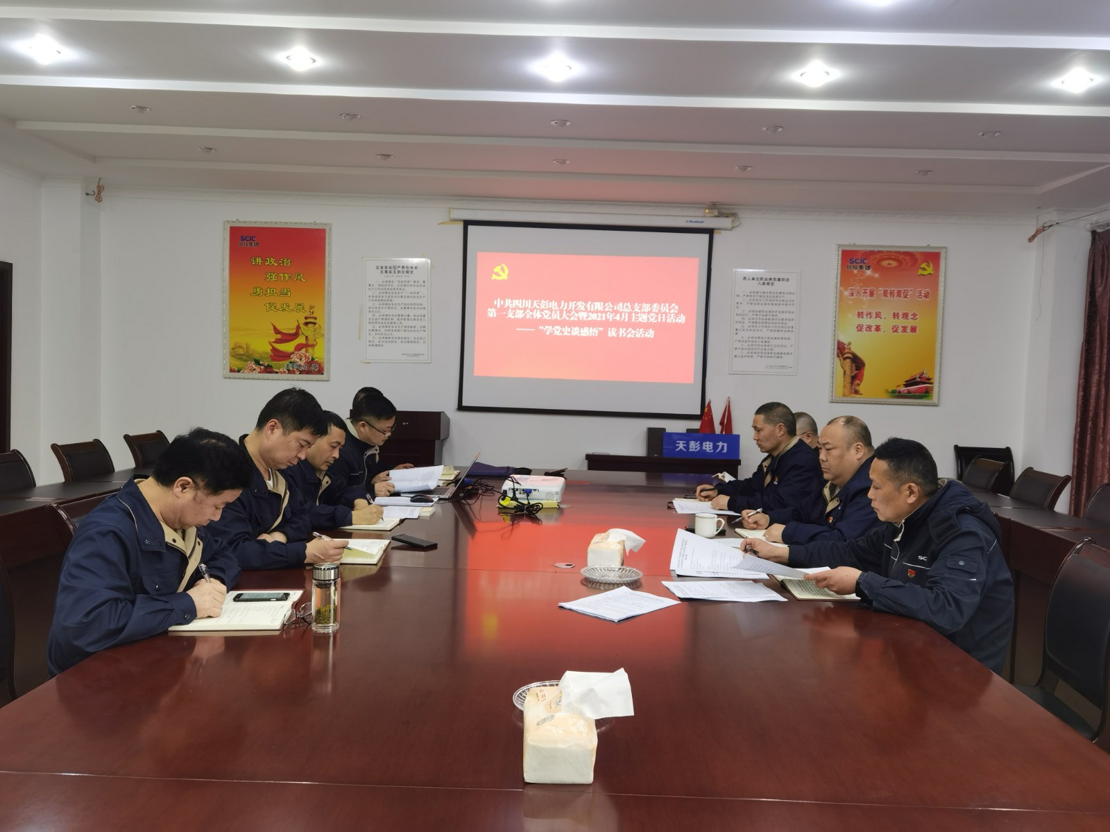 按照公司党总支关于党史学习教育的安排,4月27日下午,红桃视频 天彭电力第一党支部全体党员在二楼会议室开展了“学党史 谈感悟”党史学习教育读书会主题党日活动, 公司党总支书记、总经理陈忠参加了活动,活动由第一党支部书记何刚主持。