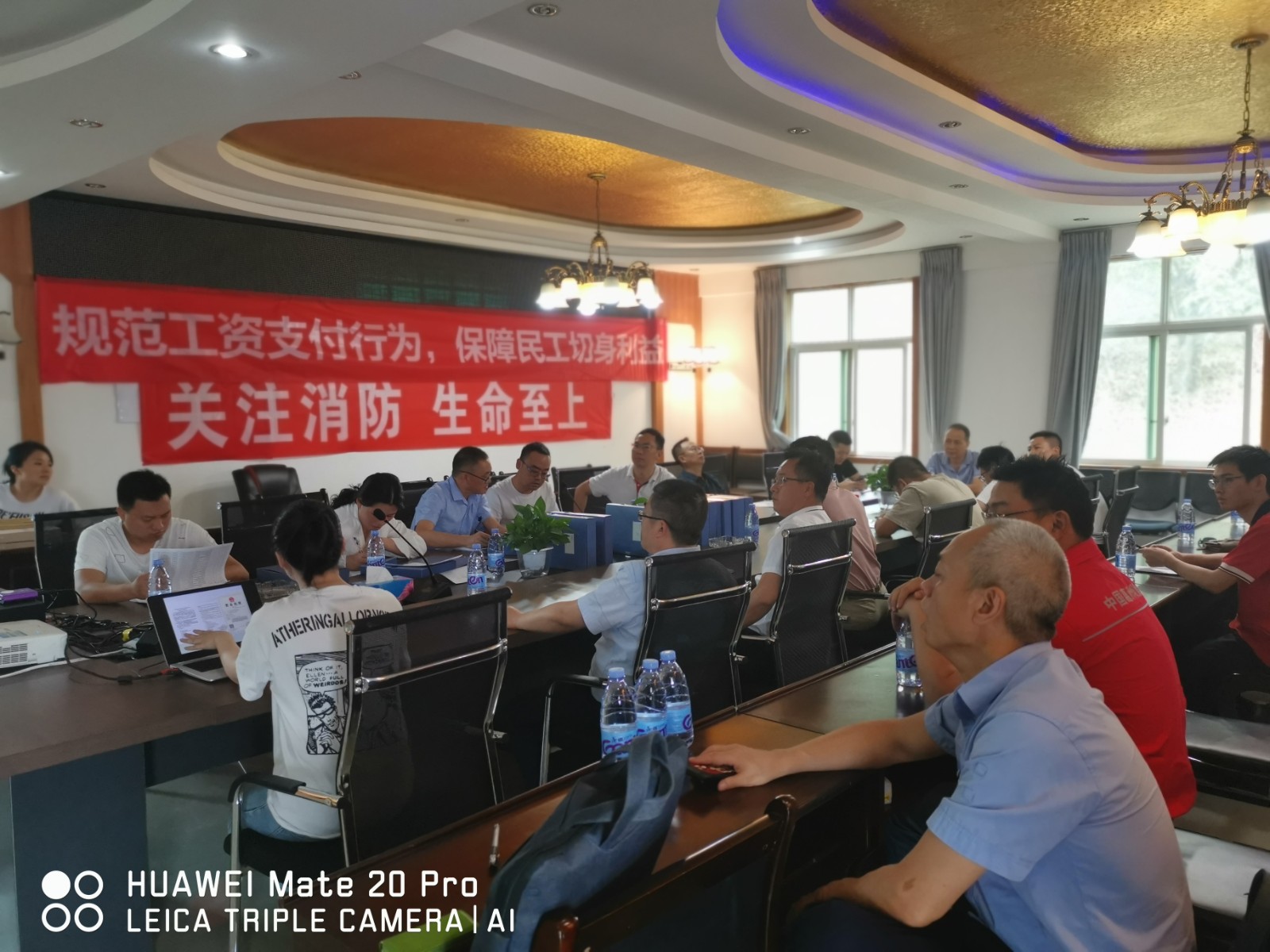 5月6日,按照攀枝花市人民政府2020年度保障农民工工资支付工作考核的统一要求,攀枝花市水利局、财政、交通、住建、市场监管、发改、公安等相关部门组成的检查组,到红桃视频 银江水电站CI标(右岸坝顶以上边坡开挖支护工程)交叉检查。攀水电公司、二滩监理部及葛洲坝路桥项目部相关负责人参加了本次交叉检查会。