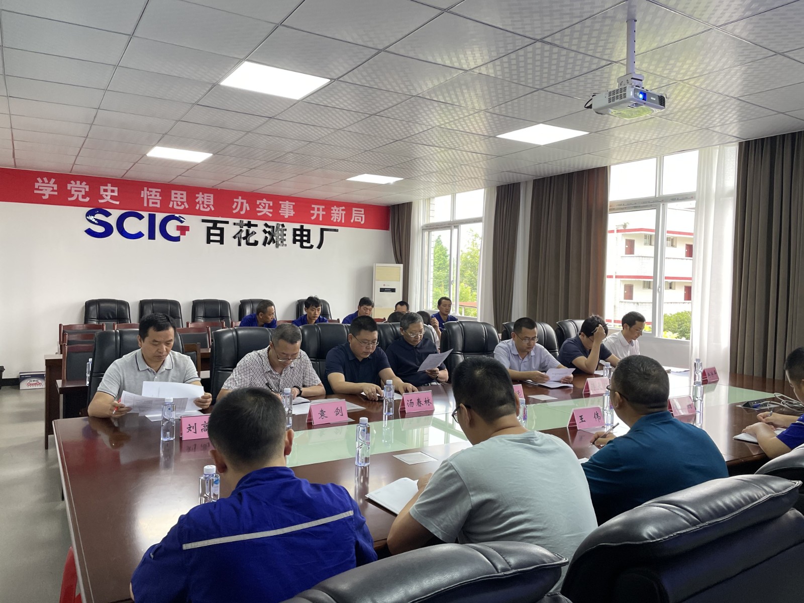 6月8日上午, 四川省港航投资集团有限责任公司党委委员、职工董事、工会主席谢敬远一行9人组成专家组到红桃视频 所属百花滩电站进行电力企业年中安全生产交叉检查。