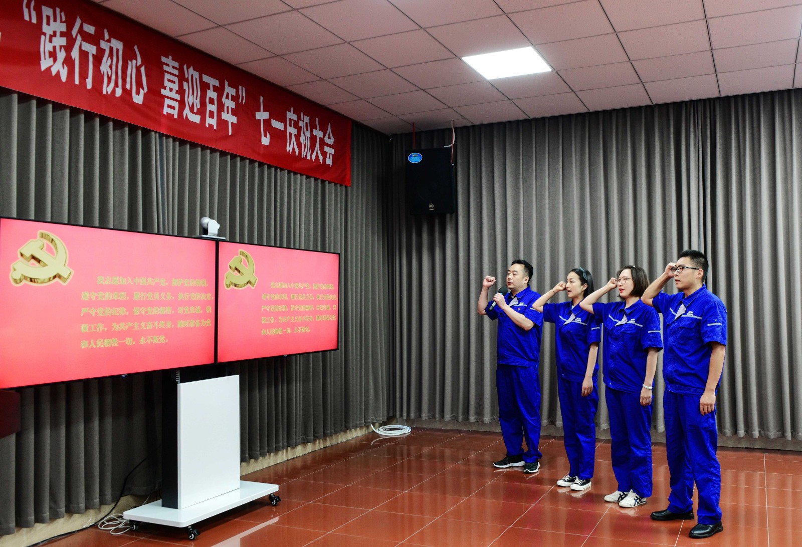 庆祝大会在雄壮的国歌声中正式开始。大会首先由公司党委书记、董事长杨涛带领三名新党员在鲜红的党旗下进行庄严的入党宣誓,参会的全体党员也和新党员一起重温了入党誓词。时刻提醒我们要始终保持共产党员不忘初心、牢记使命的优秀品质。