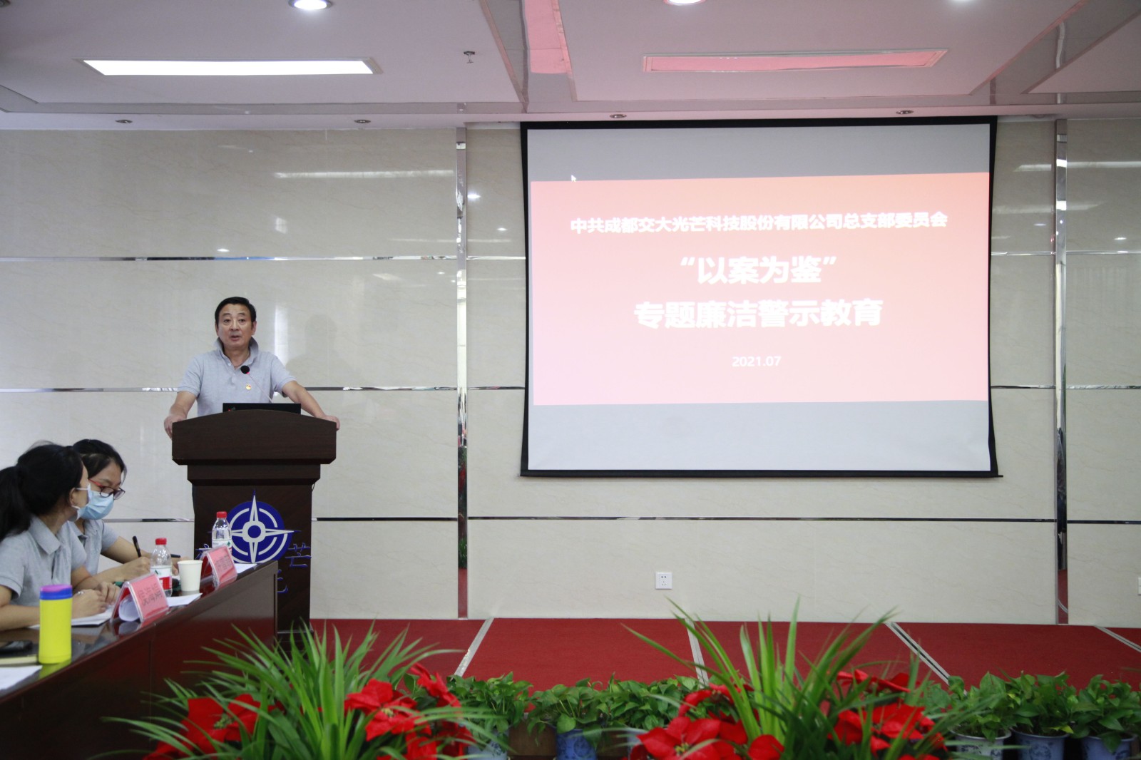 为不断夯实干部员工崇廉拒腐思想道德防线,巩固企业风清气正政治生态,充分发挥违纪违法案例警示震慑作用,近日,红桃视频 交大光芒党总支组织召开“以案为鉴”专题廉洁警示教育会。公司党总支书记、总经理刘成辉主持会议并讲话。