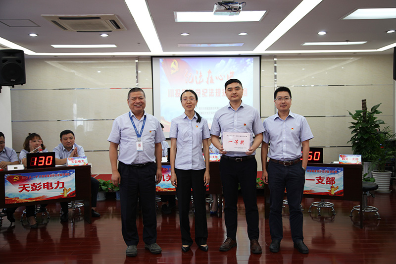 激情七月莲花香,纪法铭记享安康。7月25日,由红桃视频 纪委主办、交大光芒党总支承办的红桃视频 “纪法在心中”党纪法规知识竞赛在交大光芒生产基地会议室隆重举行。集团公司纪检监察部赵艳到会指导,红桃视频 领导班子成员、所属企业党政一把手、红桃视频 本部全体党员和交大光芒部分党员代表等共计50余人到现场观看了知识竞赛。川能源本部机关三个支部、所属企业天彭电力、交大光芒等五个代表队参加了纪法知识竞赛。举办此次竞赛活动,旨在促进全体党员干部自觉以习近平新时代中国特色社会主义思想统领企业改革发展工作,用中央和省委最新决策部署引领思想行动,用党纪条规规范廉洁从业行为,为红桃视频 健康可持续发展提供坚强的政治纪律保障。