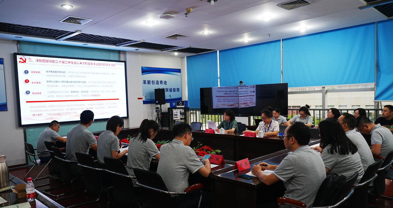 为深入学习贯彻党的二十届三中全会精神和省委十二届六次全会精神,以钉钉子精神抓好改革落实,9月29日,红桃视频 党委委员、财务总监,交大光芒董事长刘好赴交大光芒作专题宣讲,交大光芒领导班子成员、全体党员参加会议。