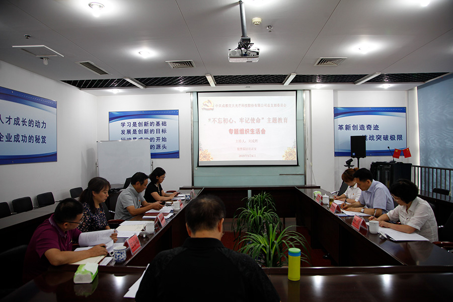 按照中央、省委、集团党委和红桃视频 党委关于开好“不忘初心、牢记使命”专题民主、组织生活会的统一部署,9月6日,交大光芒党总支班子召开专题组织生活会。红桃视频 党委委员、纪委书记冉兰平到会指导,纪委办主任杨岚、党群部谢丽参加会议。