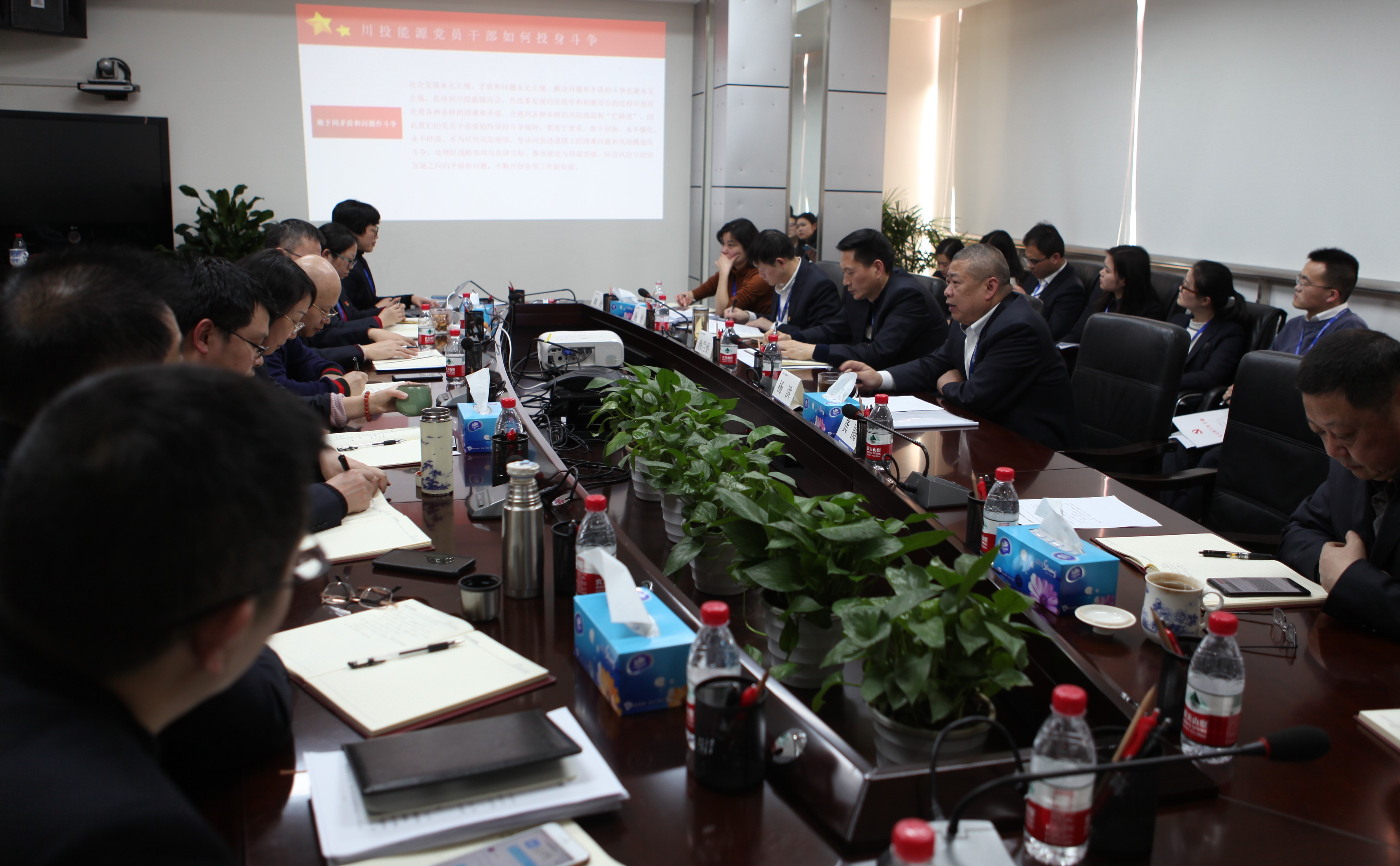 公司本部及川投电力公司全体党员、中层及以上管理人员,天彭电力和交大光芒党建、纪检负责人参加党课学习。