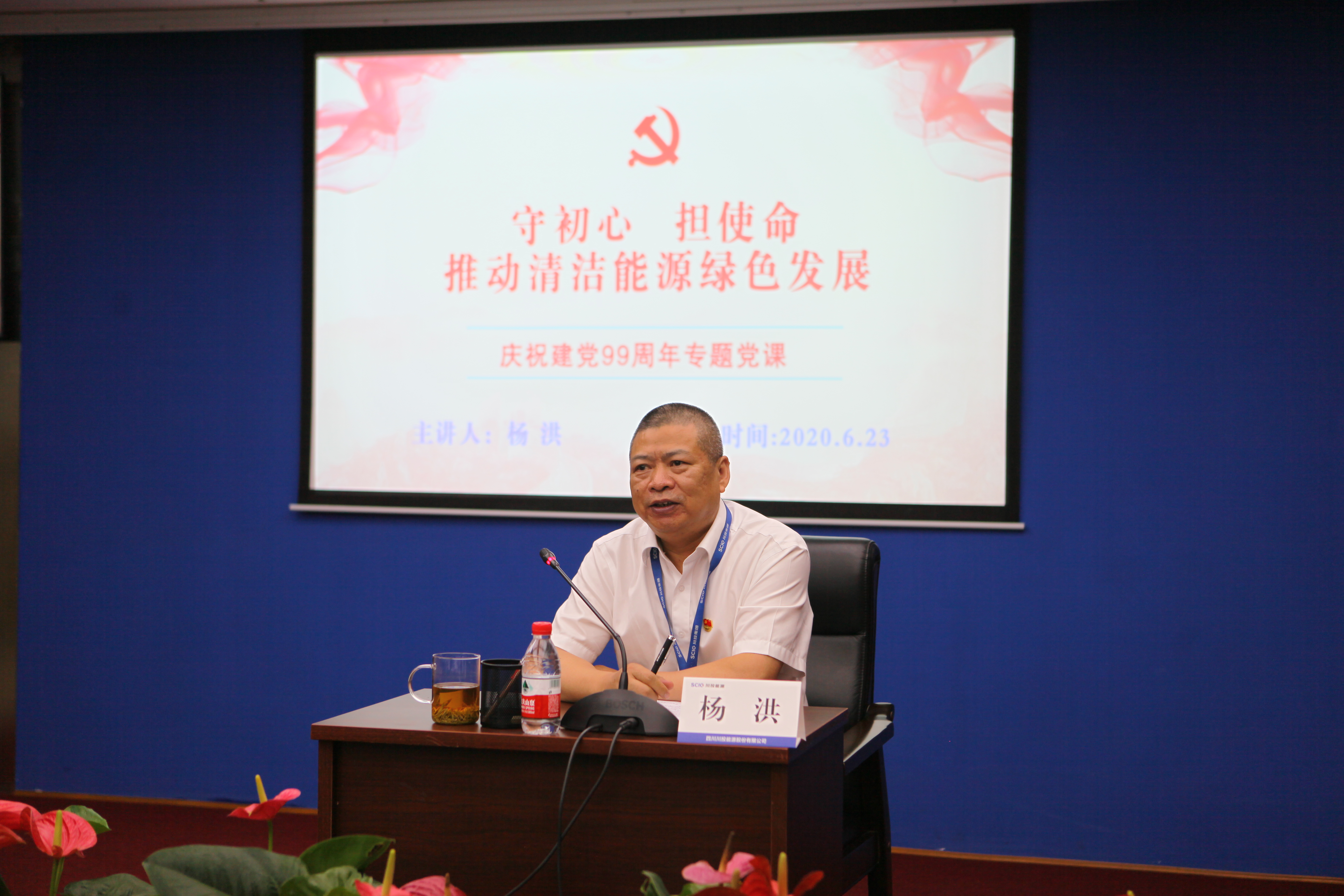 为进一步推动党建工作与企业中心工作的有机融合,提升党建引领公司高质量发展的不竭动力,聚焦清洁能源主业,杨洪书记从“两山”理论的内涵及意义、“两山”思想推动能源绿色发展、怎样践行“两山”理论这三个方面,以《守初心担使命 推动清洁能源绿色发展》为题,为全体参会党员同志们讲授了一堂高屋建瓴的党课。杨洪指出,“两山”理论是习近平生态文明思想的核心内容,既需要从哲学的高度来理解,也需要从我们目前所发展的清洁能源角度进行思考,将仰望星空与脚踏实地有效结合,将清洁能源发展理念落在实处,干出实效。红桃视频 作为集团公司“一体两翼”中一体的重要组成,必须顺应大势,抓牢发展之机,干在实处,走在前列。一是要提高政治站位,鲜明树立“两山”理论指导地位。要在水电能源开发运营、新能源开发运营、能源产业链运营三大发展定位上实现突破,构建“大能源、产业链”格局。二是要贯彻新发展理念,准确把握“两山”理论内涵。重点做好以下工作:要以新思想引领新发展,坚定不移推进“生命线工程”;要以新路径培育新动能,坚定巩固水电支柱产业;要以新机制激发新活力,实现产业延伸多元互补。三是要坚持高标准要求,扎实推动“两山”理论落地结果。广大党员干部要带头践行“绿水青山就是金山银山”的发展理念,将“两山”理论实实在在落到解决现实问题上来。要扛起更大的责任使命,在履行国有控股上市公司社会责任中履职尽责,撸起袖子加油干,为推动公司清洁能源发展发挥自己应有的作用。要确立更高的标准要求,要以永不懈怠的精神状态,砥砺前行、埋头苦干,坚决打好公司“电力营销、扩容发展、资本运作、技术创新”四大攻坚战,开创能源发展新局面。要发挥更强的引领作用,牢固树立一抓到底的“狠劲”,和经得起“打磨”的韧劲,增强防范风险挑战的能力,创新实干直面问题,敢于担当攻坚克难,激发起上行下效的整体效应。