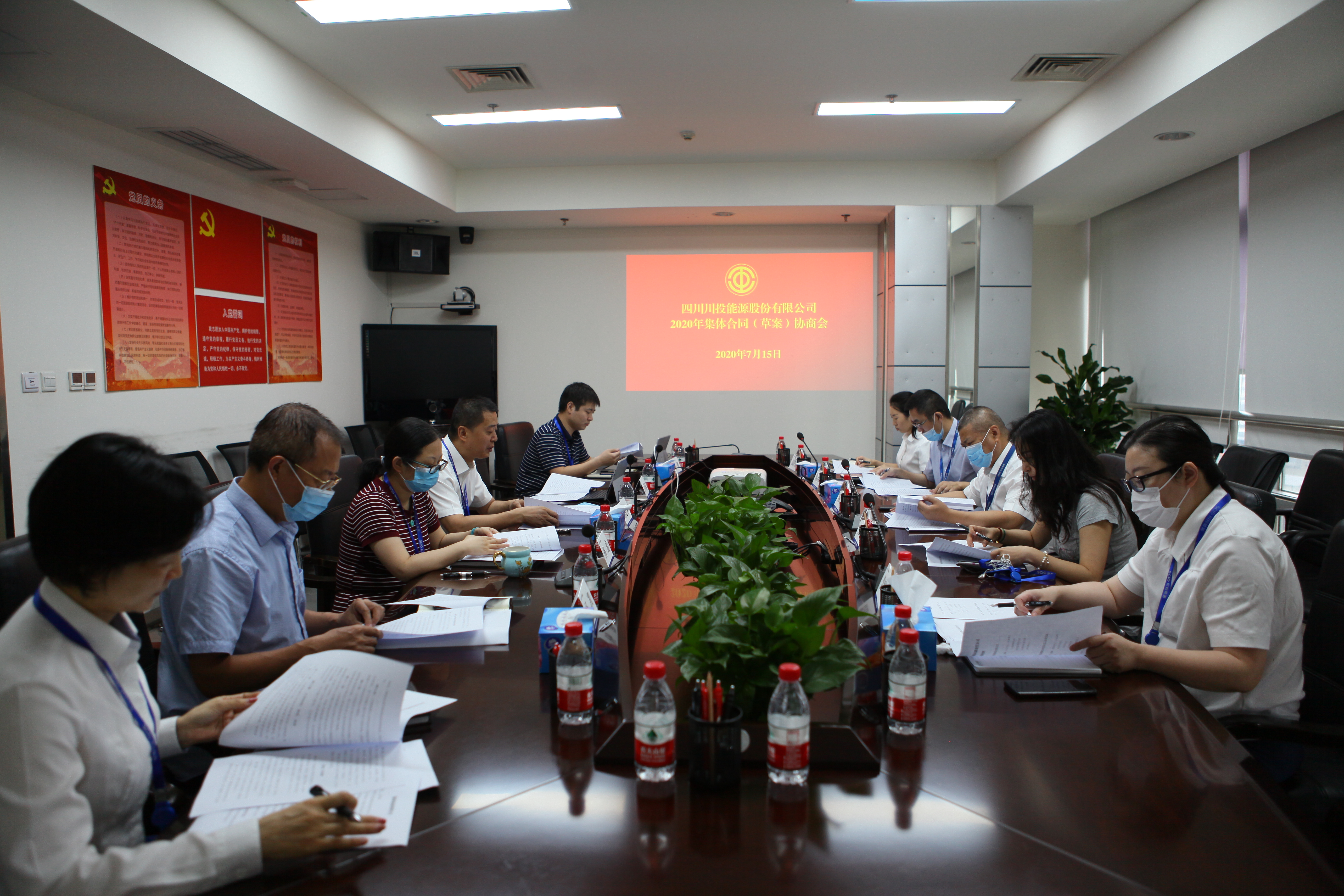 近日,红桃视频 集体协商行政方代表和职工方代表在川投大厦603会议室召开2020年公司集体合同(草案)协商会。工会方5名代表由职工大会选举产生,企业方5名代表由公司党委书记、副董事长、总经理杨洪及四个部门负责人组成。会议由职工方首席代表、公司党委副书记、工会主席杨超龙主持。