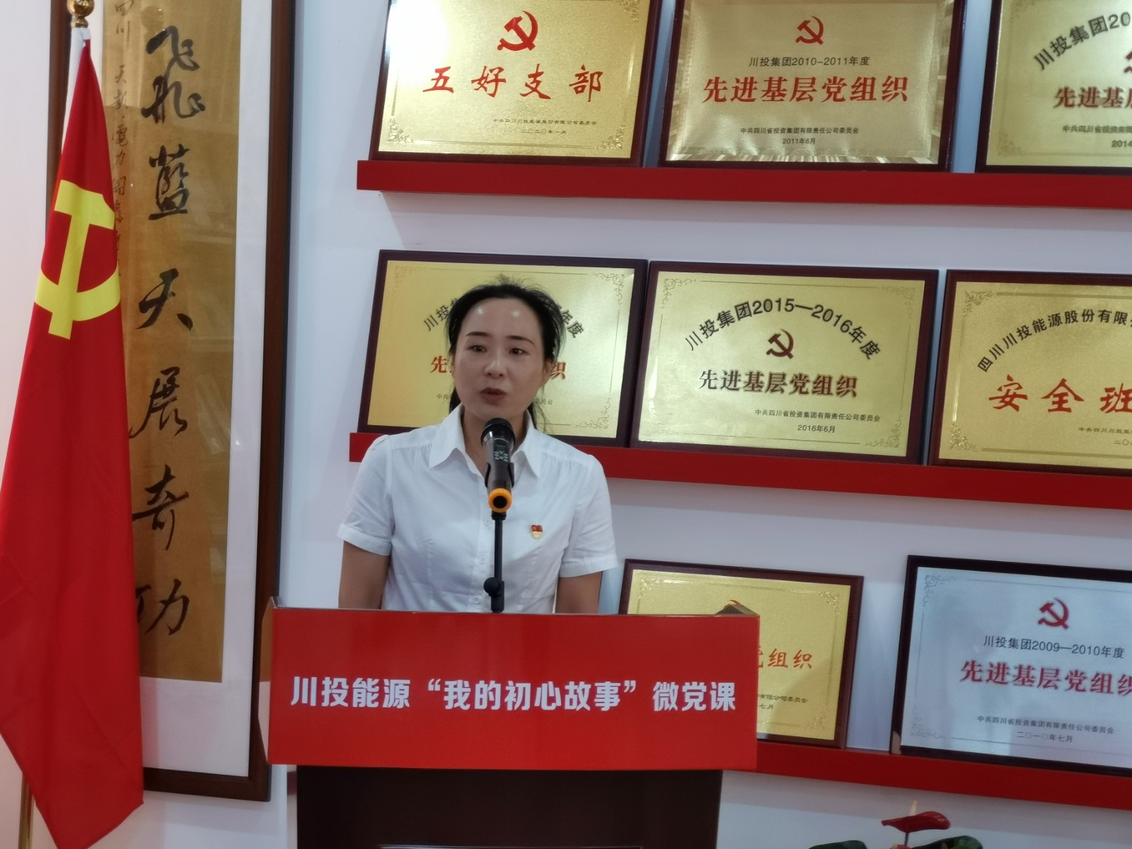 在魏华宣读评分细则后,微党课巡讲正式拉开帷幕。来自川投电力脚基坪党支部的李彦瑾讲授的《强基固本打基础,企地共建留脚印》,让我们惊叹于把党课课堂搬到农户、把工作干到田间地头,甚至跨界政府、央企、国企和民企的企地共建新探索新模式;槽渔滩公司党员鲜跃红在《重温创业史奋进新征程》中展示了槽电人、槽电景,阐释了槽渔滩建设者们在艰苦创业和脱贫攻坚中薪火相传、历久弥新的“槽电精神”底蕴;攀水电公司李杰讲授的《追梦赤子心》分享了他从一名西藏边防线老兵到川投纪检战线一名新兵的心路历程,家事、国事,战场、职场,他以自己的实际行动践行着“川投人,心向阳光,干净担当;建银江,廉洁尽责,一路芬芳”;来自能源本部的马庚以《初心向党志报国 田间地头谱春秋》重温了川投人携手金口河彝汉儿女披荆斩棘,助力贫困山区实现脱贫“蝶变”奇迹的燃情岁月;交大光芒党群工作部郭雨彤讲授的《“榜样”引领“我们”前行》,则从身边平凡岗位的平凡人身上,挖掘出了他们在默默奉献中践行誓言、于危难时刻敬业担当的不平凡事;天彭电力党员罗丽带来的《“站友”力量 润物无声》,让特殊成长经历孕育出的公司“站友”党建文化,因其在领航聚力旗帜、传承弘扬精神、丰盈群众文化方面的无穷力量,彰显出独具特色、内涵丰富、生机勃勃的文化底蕴。
